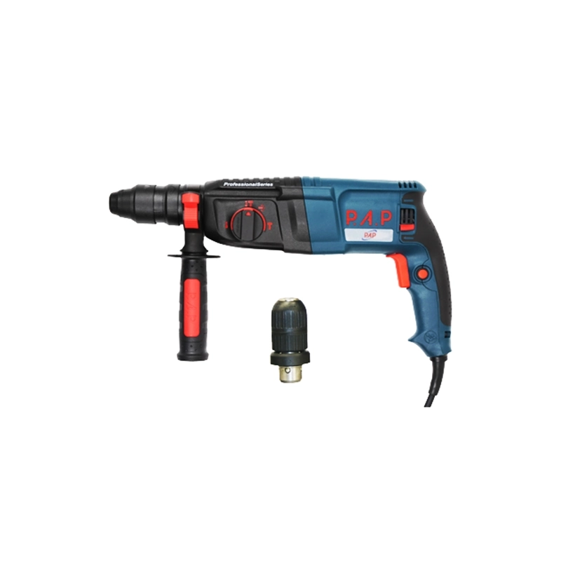 | ویژگی ها | رند پی ای پی توان 800 وات سرعت در حالت آزاد 1100 دور در دقیقه تعداد ضربه 4900 ضربه در دقیقه ظرفیت سوراخکاری در بتن 26 میلیمتر ظرفیت سوراخکاری در فلز 13 میلیمتر ظرفیت سوراخکاری در چوب 30 میلیمتر قلم نوک تیز دارد قلم نوک تخت دارد مته سایز 6 دارد مته سایز 8 دارد مته سایز 10 دارد سه نظام 13 میلیمتر دارد مته معمولی دارد جعبه BMC دارد وزن 3.3 کیلوگرم گارانتی 12 ماه پی ای پی |