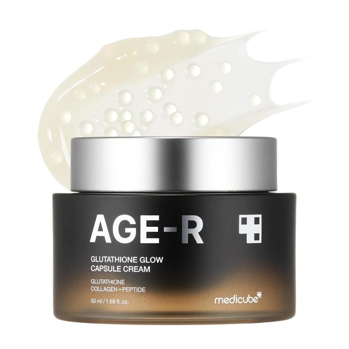 کرم کپسولی جوانساز و درخشان کننده مدی کیوب Medicube حاوی گلوتاتیون و کلاژن مدل AGE-R یک کرم جوانساز است که کپسول های براق موجود در فرمولاسیون آن عمیقا جذب پوست شده و درخشندگی آنی را برای پوست به همراه دارد و با تکنولوژی های منحصر به فرد کره ای بالاترین جذب و اثربخشی را ایجاد میکند. همچنین دارای خواص آنتی اکسیدانی و ضد پیری است که بافت ناهموار پوست را یک رنگ و یکدست کرده و پوست را تقویت، نرم و صاف میکند. مانع از دهیدراته شدن پوست شده و آن را تقویت میکند، همچنین انعطاف پذیری پوست را افزایش میدهد. برای انواع پوست حتی حساس مناسب است و مشکلات ناشی از بالا رفتن سن مثل خطوط ریز، کدری و افتادگی را اصلاح میکند.