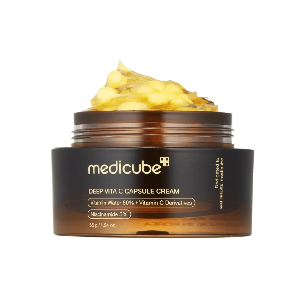 کرم کپسولی ویتامین سی محصولی جدید از برند مدی کیوب، ساخت کره است. این محصول دارای بافتی ژله ای بههمراه کپسولهای زرد رنگ ویتامین سی است که به اصلاح بافت پوست و بهبود خاصیت ارتجاعی آن کمک میکنند. همچنین کپسولهای ویتامین C موجود در این کرم رنگ تیره پوست را روشن میکنند و با مهار تولید ملانین باعث کاهش لک های تیره و اسکار صورت می شوند.