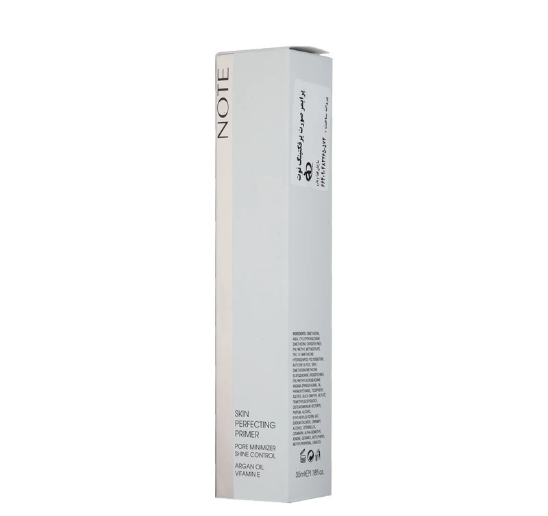 پرایمر قبل از کرم پودر استفاده میشود و پوستتان را برای آرایش آماده میکند. پرایمر معمولا منافذ باز پوست را موقتا به مقدار قابل توجهی کاور کرده و پوست رو صاف و یکدست میکنند. این محصول دوام آرایش را بالا میبرد و باعث میشود پوست صورت دیر تر و کمتر عرق کرده و آرایش دوام بیشتری داشته باشد. پرایمر نوت مدل اسکین پرفکتینگ حجم ۳۵ میل، حاوی ویتامین E و روغن بادام است و پوست را کاملا آبرسانی میکند. این پرایمر بافت کاملا مخملی و مات دارد و کاملا منافذ باز صورت را پوشش داده و ماندگاری میکاپ را بسیار بالا میبرد. این پرایمر مغذی پوست صورت است و ظاهر پوست شما را شاداب نشان میدهد.