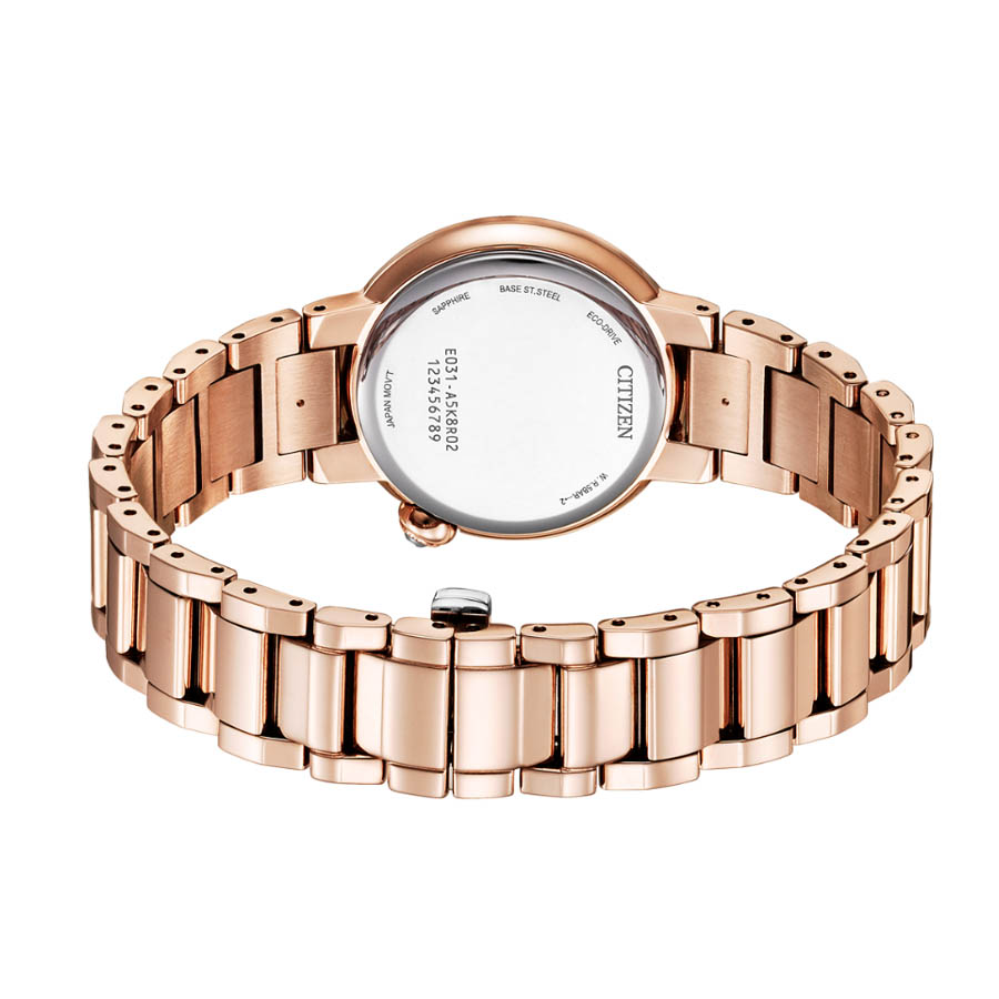 برند سیتیزن اصالت برند ژاپن ضمانت پنج ساله شرکت زمان آوران پیشرو استایل کلاسیک مناسب برای خانم ها نوع موتور اکودرایو منبع انرژی نور محیط کشور سازنده موتور ژاپن شکل قاب گرد سایز قاب 30 رنگ قاب رزگلد جنس قاب استیل صفحه نمایش آنالوگ رنگ صفحه صدفی نوع شیشه کریستال سافایر ضد خش نوع بند استیل رنگ بند رزگلد نوع قفل کلیپسی تقویم ندارد عقربه شب نما ندارد مقاومت در برابر آب در حد شستن دست (50 متر) اصالت کالا اصل